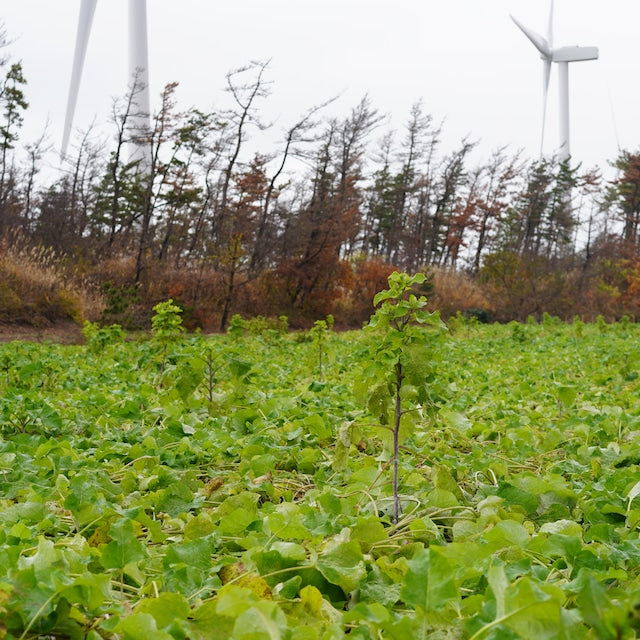 The burdock used in this tea is grown in fields overlooking the Shirakami Mountains. These fields sit on sandy soil near the Sea of Japan, separated only by a windbreak forest. The sandy terrain allows the burdock roots to grow straight and deep without obstruction.